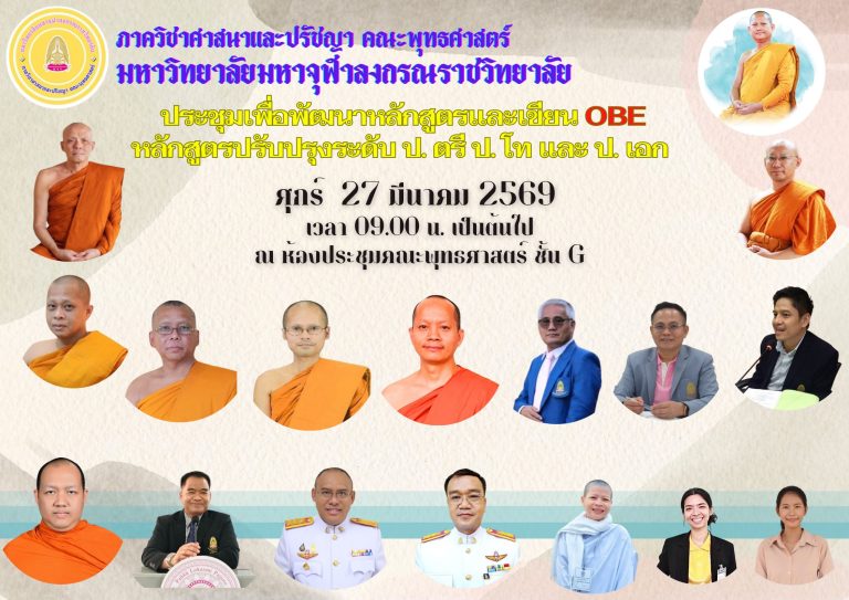 31March 31, 2026●(1 event) – ห้องประชุมประจำคณะพุทธศาสตร์ ชั้น G อาคารสมเด็จพระพุฒาจารย์ (เกี่ยว อุปเสณมหาเถระ) (อาคารเรียนรวม) มหาวิทยาลัยมหาจุฬาลงกรณราชวิทยาลัย |