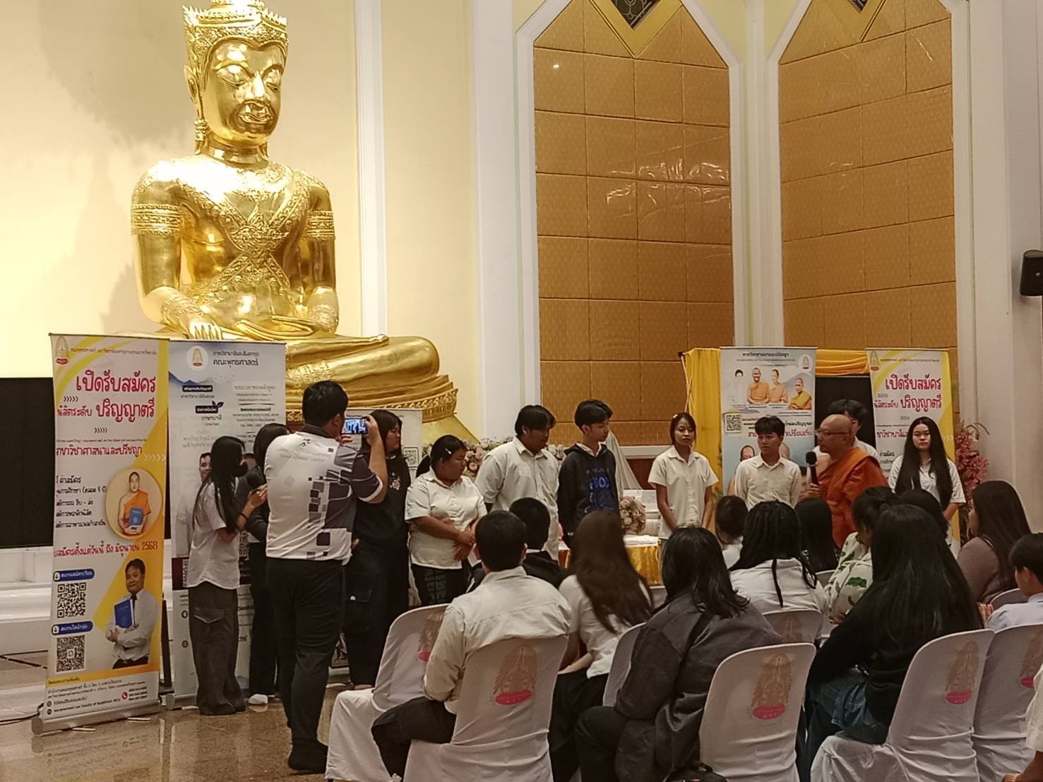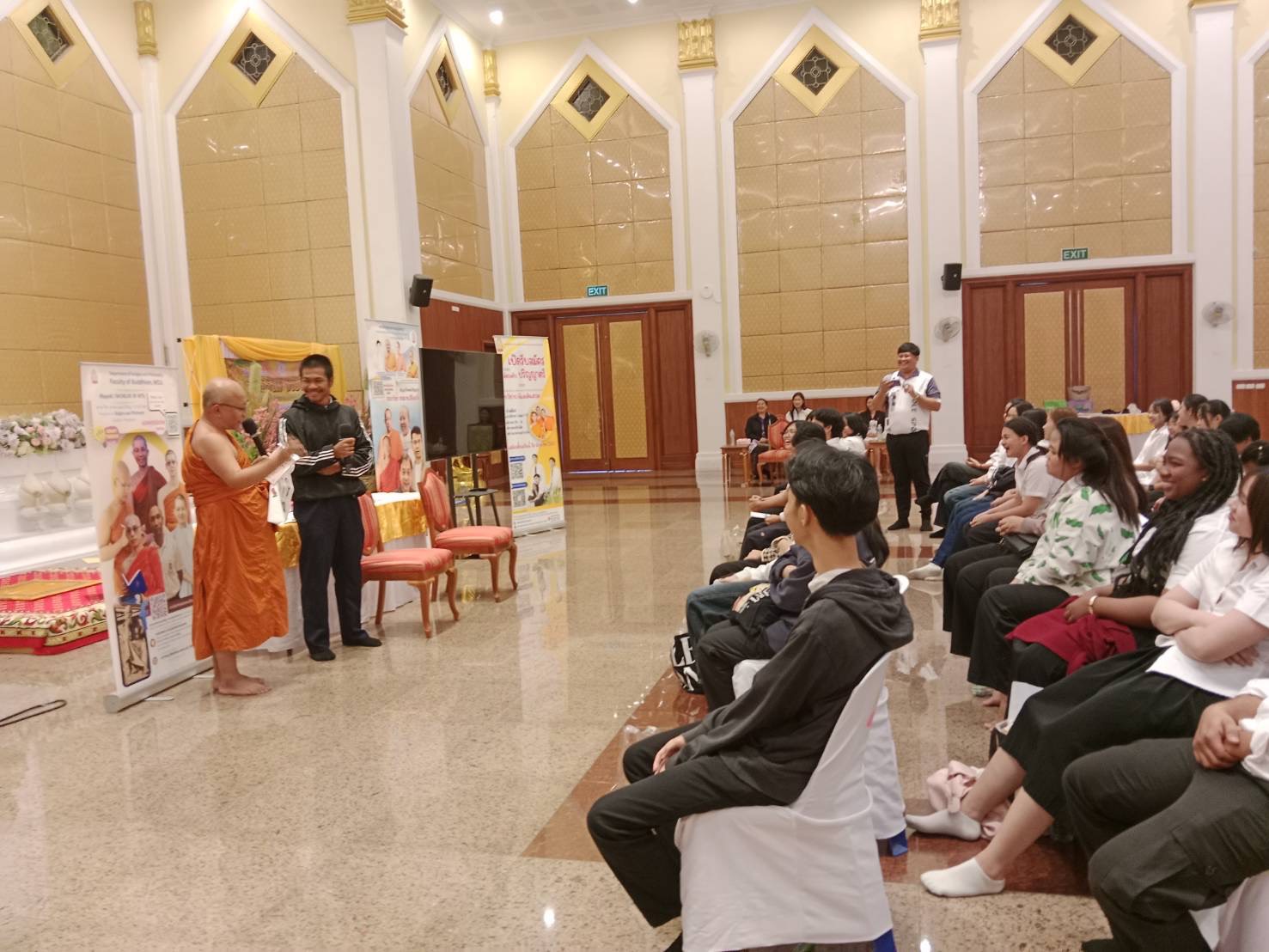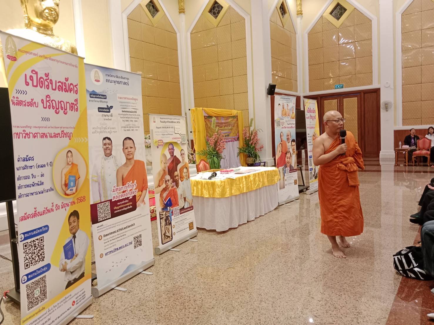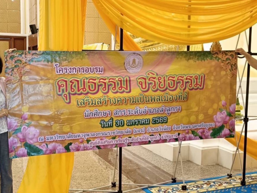 วันที่ 30 มกราคม 2569 เวลา 13.00-14.00 น. พระมหาขวัญชัย กิตฺติเมธี,ผศ,ดร. หัวหน้าภาควิชาศาสนาและปรัชญา, นางสาวเกษริน บุตรา และนางสาวปาริชาติ พิมพ์อุบล เจ้าหน้าที่หลักสูตรร่วมประชาสัมพันธ์หลักสูตรทั้งในระดับปริญญาตรี หลักสูตรศาสนาและปรัชญา, บาลีสันสกฤต และพระพุทธศาสนา วิปัสสนาภาวนา, ประกาศนียบัตรพุทธปรัชญาเวชกรรมไทย, ปริญญาโทและเอก สาขาวิชาศาสนาเปรียบเทียบ ในโครงการอบรมคุณธรรรม จริยธรรมเสริมสร้างความเป็นพลเมืองที่ดี และมอบโอกาสทางการศึกษาให้แก่นักศึกษาและบุคลากร สกร สกร.ระดับอำเภอลำลูกกา ผู้เข้าร่วมกิจกรรม จำนวน 90 คน ณ วัดมหาจุฬาลงกรณราชูทิศ อ.วังน้อย จ.พระครศรีอยุธยา
