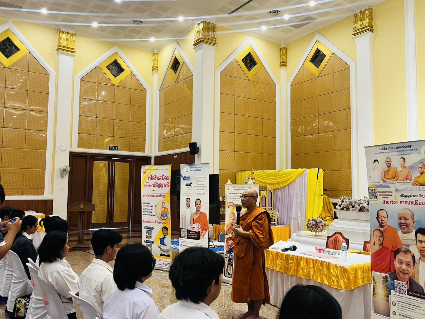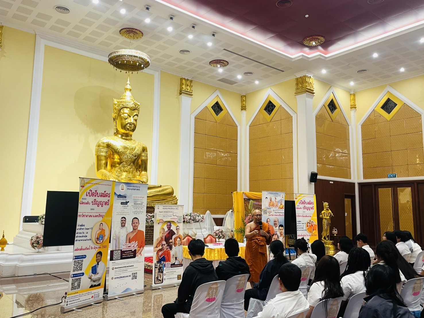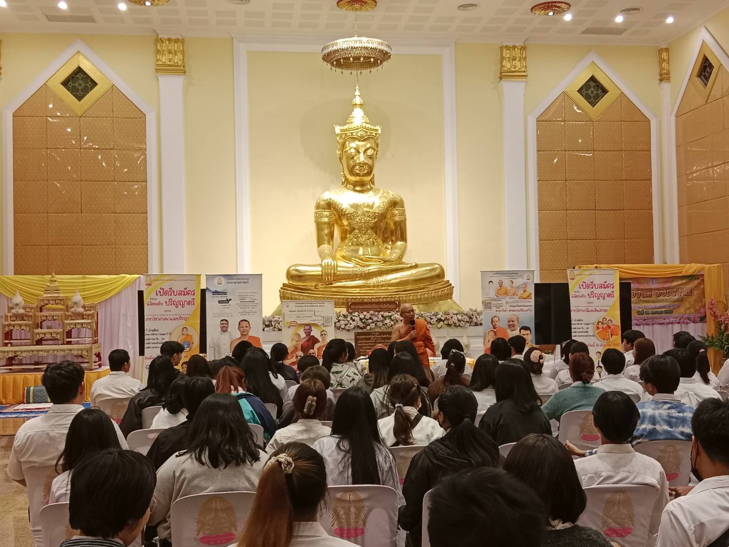 วันที่ 30 มกราคม 2569 เวลา 13.00-14.00 น. พระมหาขวัญชัย กิตฺติเมธี,ผศ,ดร. หัวหน้าภาควิชาศาสนาและปรัชญา, นางสาวเกษริน บุตรา และนางสาวปาริชาติ พิมพ์อุบล เจ้าหน้าที่หลักสูตรร่วมประชาสัมพันธ์หลักสูตรทั้งในระดับปริญญาตรี หลักสูตรศาสนาและปรัชญา, บาลีสันสกฤต และพระพุทธศาสนา วิปัสสนาภาวนา, ประกาศนียบัตรพุทธปรัชญาเวชกรรมไทย, ปริญญาโทและเอก สาขาวิชาศาสนาเปรียบเทียบ ในโครงการอบรมคุณธรรรม จริยธรรมเสริมสร้างความเป็นพลเมืองที่ดี และมอบโอกาสทางการศึกษาให้แก่นักศึกษาและบุคลากร สกร สกร.ระดับอำเภอลำลูกกา ผู้เข้าร่วมกิจกรรม จำนวน 90 คน ณ วัดมหาจุฬาลงกรณราชูทิศ อ.วังน้อย จ.พระครศรีอยุธยา
