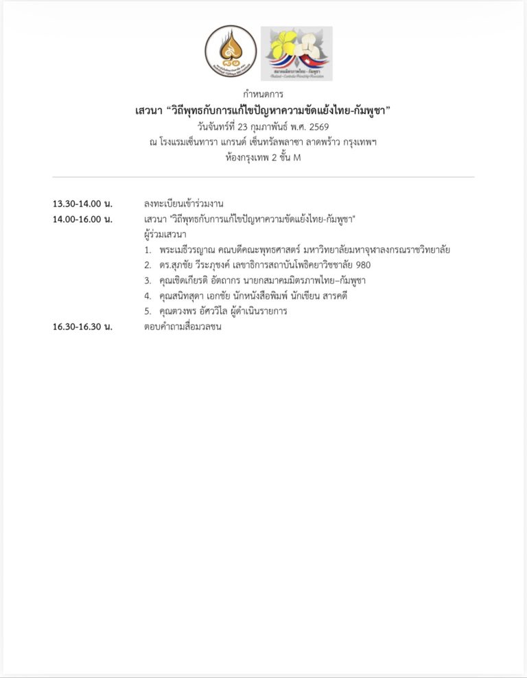 สถาบันโพธิคยาวิชชาลัย 980 จัดเวทีเสวนานานาชาติ เดือนกุมภาพันธ์ 2569
