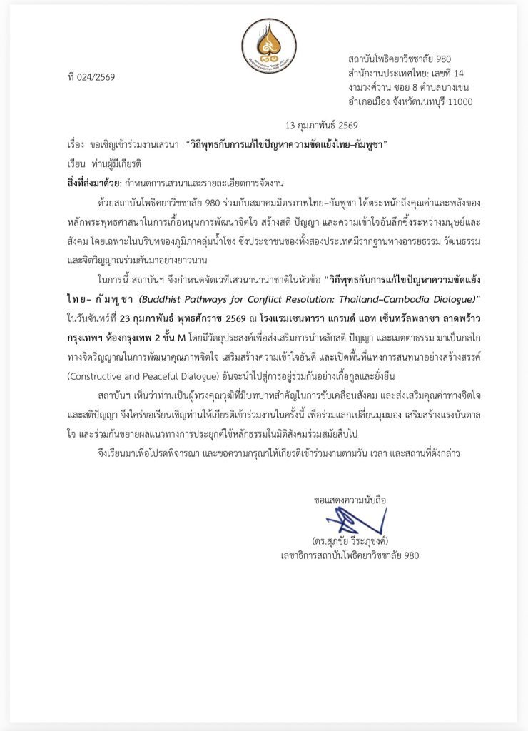 ข่าวประชาสัมพันธ์!! สถาบันโพธิคยาวิชชาลัย 980 จัดเวทีเสวนานานาชาติ เดือนกุมภาพันธ์ 2569